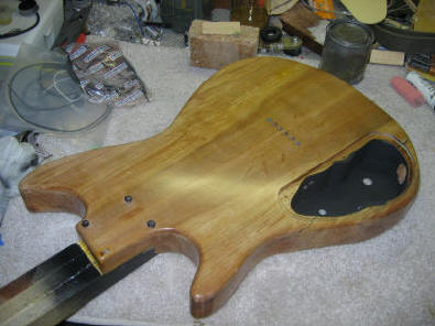 A full photo of the guitar's back. Again, the control cavity looks really big, but it is meant to accommodate extra controls and preamps in the future. More to follow on this. | |