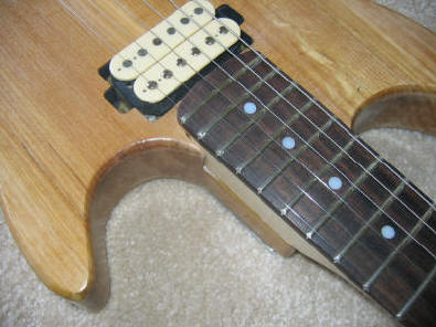 Here is a photo of the rhythm pickup and neck joint. The neck is an eBay special (by Mighty Mite, I believe), and it required some incredible fret work to get it playing correctly. Nearly everything above the 12th fret was dead when I initially strung it up. The lesson is that the cheap neck may not be cheap by the time you get it working. By the way -- this alder turned out to be really beautiful! I wish I had finished it with nitro lacquer!