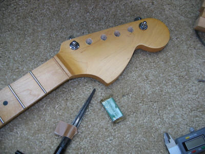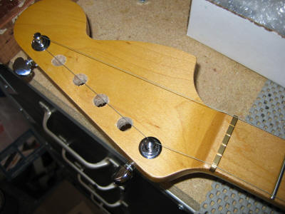 this one, the tuner holes had to be 10mm. While the actual Schallers were still being used, I used some "donor" Grovers with 10mm